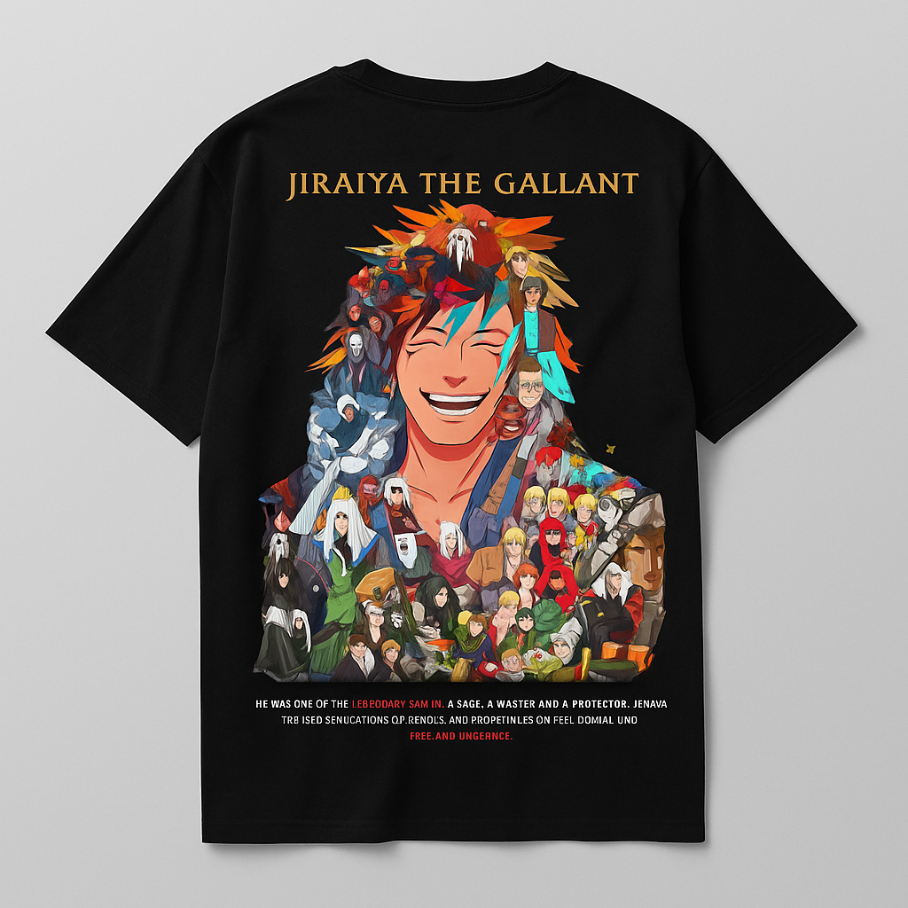 "The Tale of Jiraiya the Gallant." Designed for those who believe in standing tall even in the face of fate, this shirt is more than just apparel—it's a symbol of legacy, sacrifice, and the will of fire.